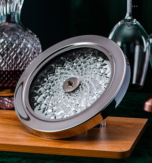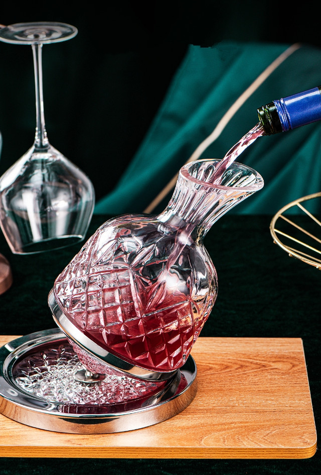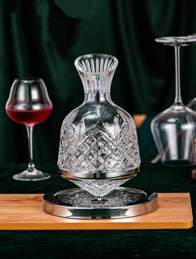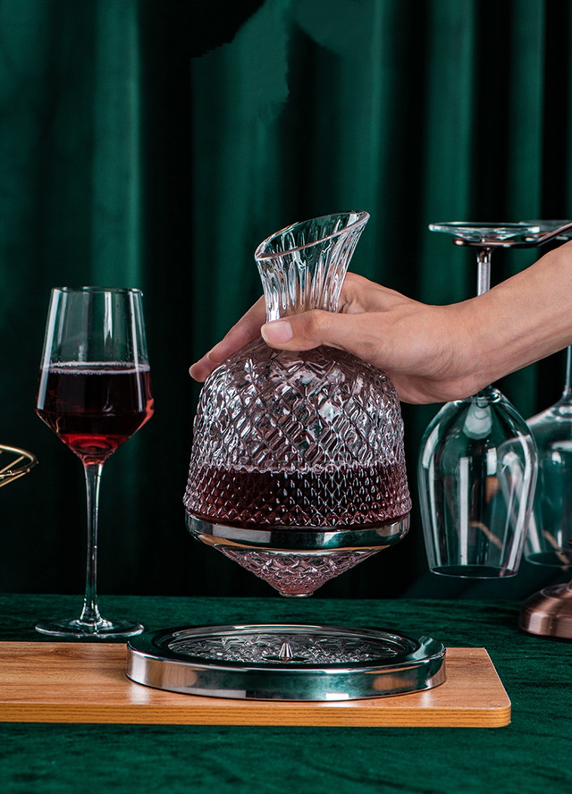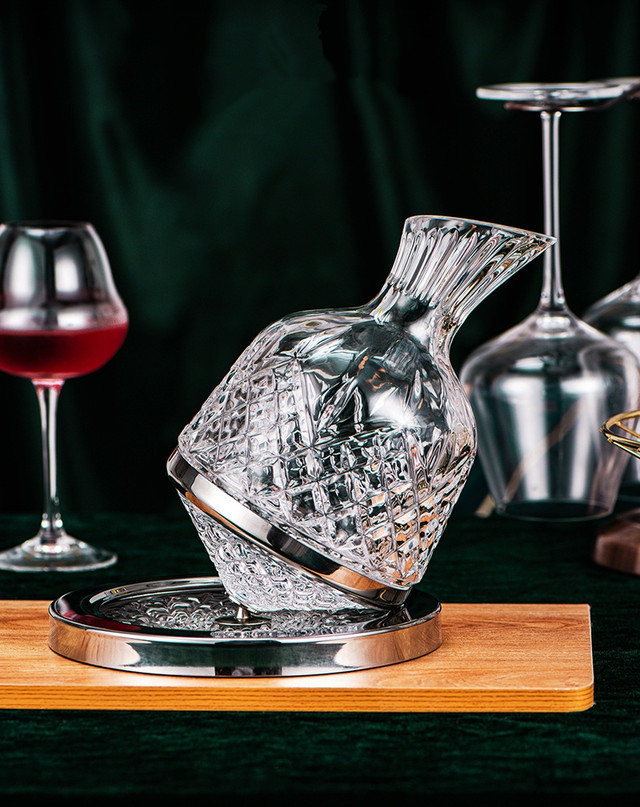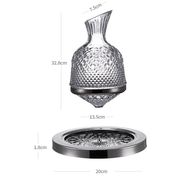Виготовлений з кришталю з ковзаючою поверхнею, завдяки чому графин зручно тримати в руці. Особливістю графина є скляний вовчок в металевій оправі, який дозволяє графину обертатися на 360°.