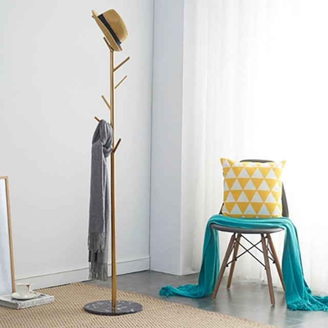 Каркас вішалки виконаний з якісного кованого заліза з золотистим покриттям, завдяки чому виріб прослужить Вам довго. Кругла мармурова підставка забезпечує стійкість конструкції, навіть при нерівномірному навантаженні.