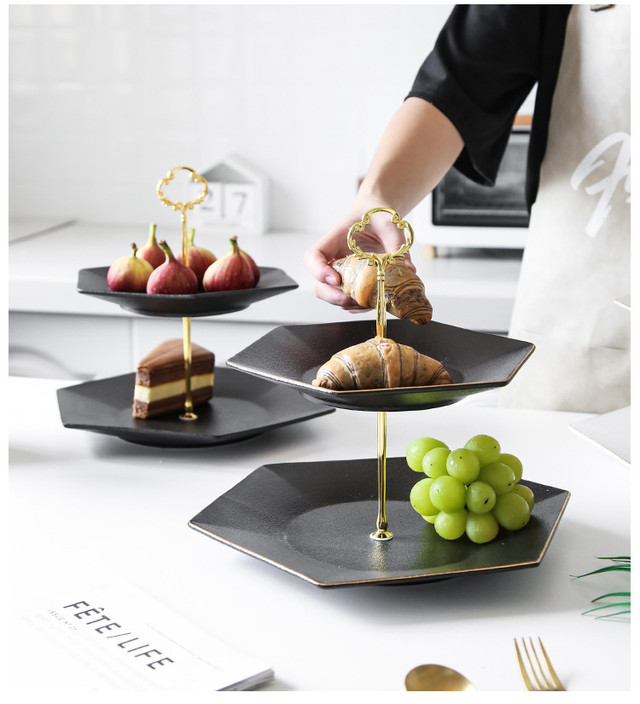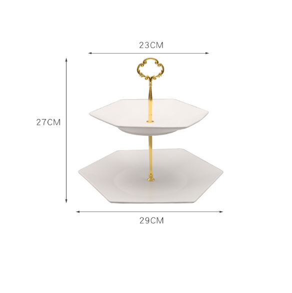 Оригинальная двухъярусная фруктовница RD-6813 от магазина ProHouse украсит стол и станет отличным дополнением интерьера Вашего дома или офиса. Благодаря стильному и элегантному дизайну посуда гармонично впишется в любой современный интерьер. Конструкция изделия состоит из металлического каркаса и двух керамических шестиугольных тарелок разного размера. Благодаря такой конструкции вы сможете подать вдвое больше блюд, не занимая при этом много места на столе. Такое многоуровневое блюдо можно использовать как фруктовницу или конфетницу, подать на нем закуски или же хлебобулочные изделия.