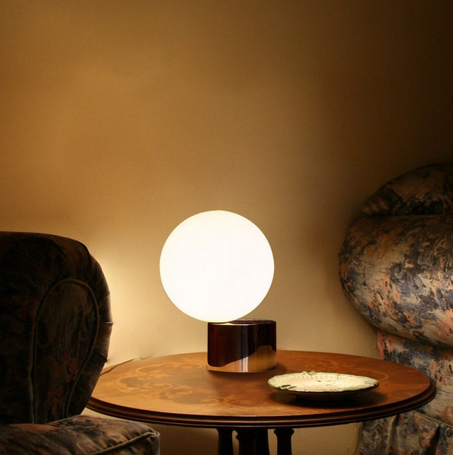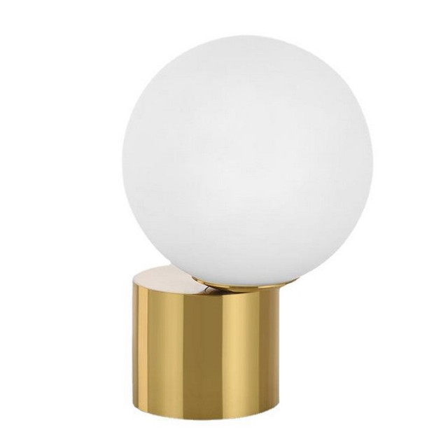 Это изысканный светильник со стильным, оригинальным дизайном белого и золотого цвета. Модель подойдет для спальни, гостиной или офиса с современным интерьером. Состоит из белого плафона в виде шара из матового стекла, установлен на устойчивом основании из металла цилиндрической формы золотистого цвета. В качестве источника света используется светодиодная лампа. Светильник предназначен для работы в сети переменного тока с номинальным напряжением 220 В. Размер светильника: высота - 30 см, ширина 20 см. Мощность - 40 Вт.
