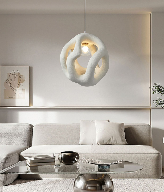 Підвісний світильник виготовлений у японському креативному стилі у формі скульптури ручної роботи. Він обов'язково стане головною окрасою інтер'єру, додасть йому затишку та теплоти. Має унікальний і незвичайний дизайн. Компактна люстра впишеться в приміщення різного функціонального призначення: житлові кімнати, зали кафе та ресторанів. Матеріал виробу — полістиролбетон високої щільності. Як джерело світла використовується світлодіодна лампа. Площа освітлення — 3㎡-5㎡ 5㎡-10㎡.